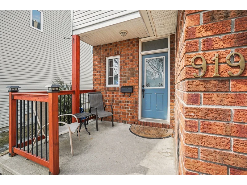 CURB APPEAL & UPGRADES GALORE! A FABULOUS END UNIT w/pizzazz, a striking layout, covered front porch w/wrought iron railing, prof landscaped front & back, added trees for privacy/shade, perennial boxes, fenced yard, shed & recently redone 2-tier pressure-treated deck, great for BBQ & outdoor enjoyment.